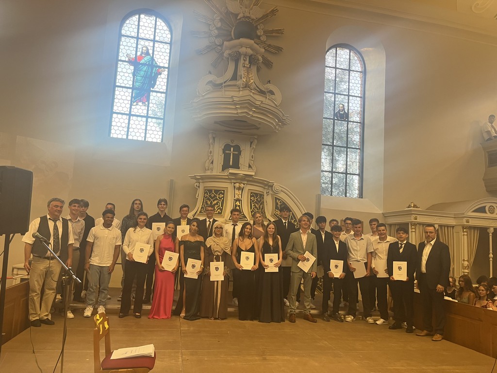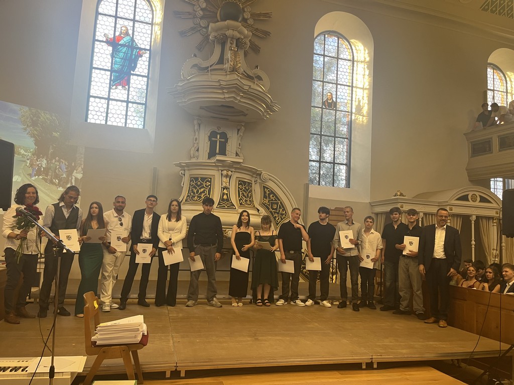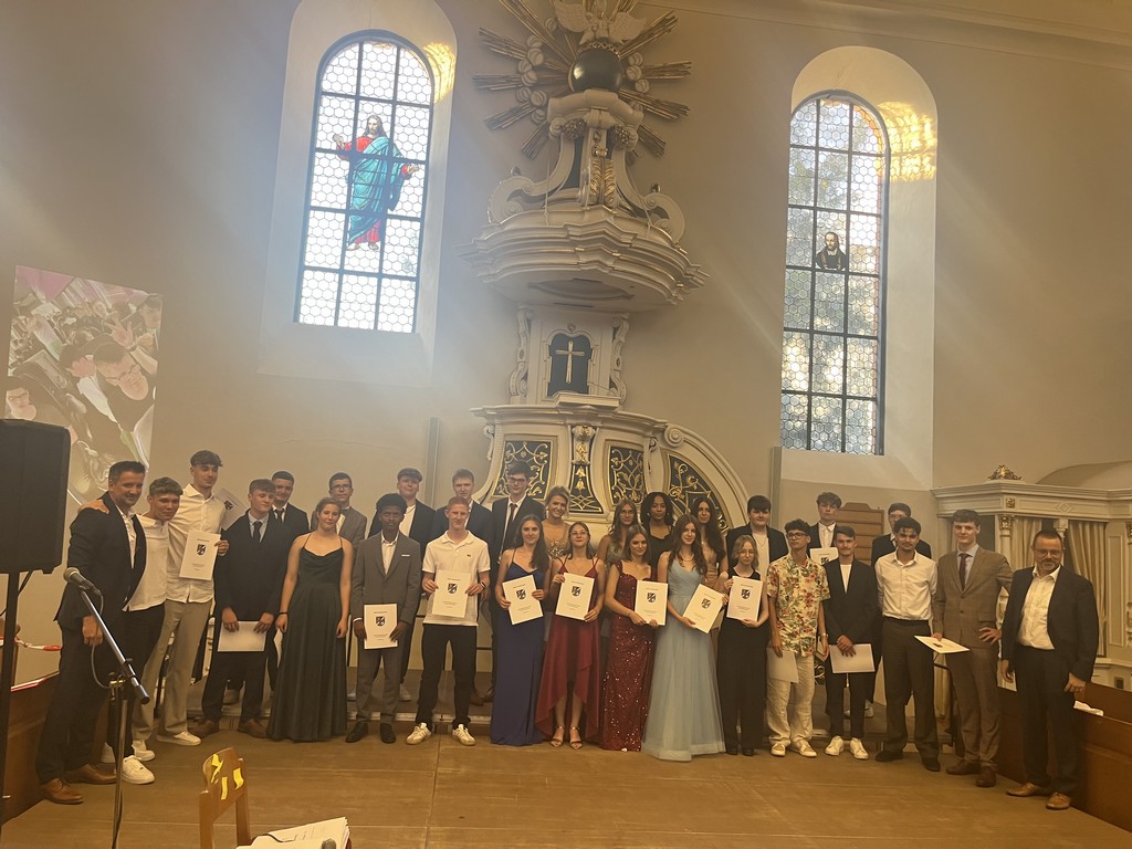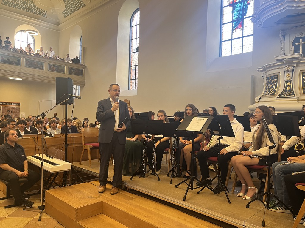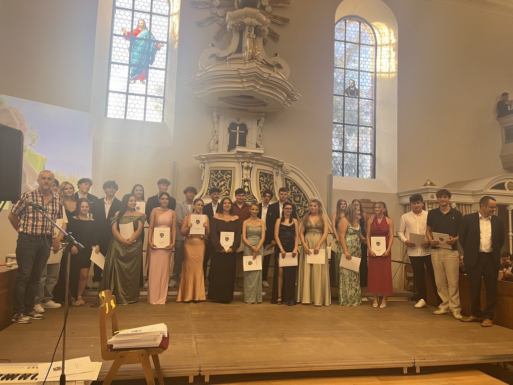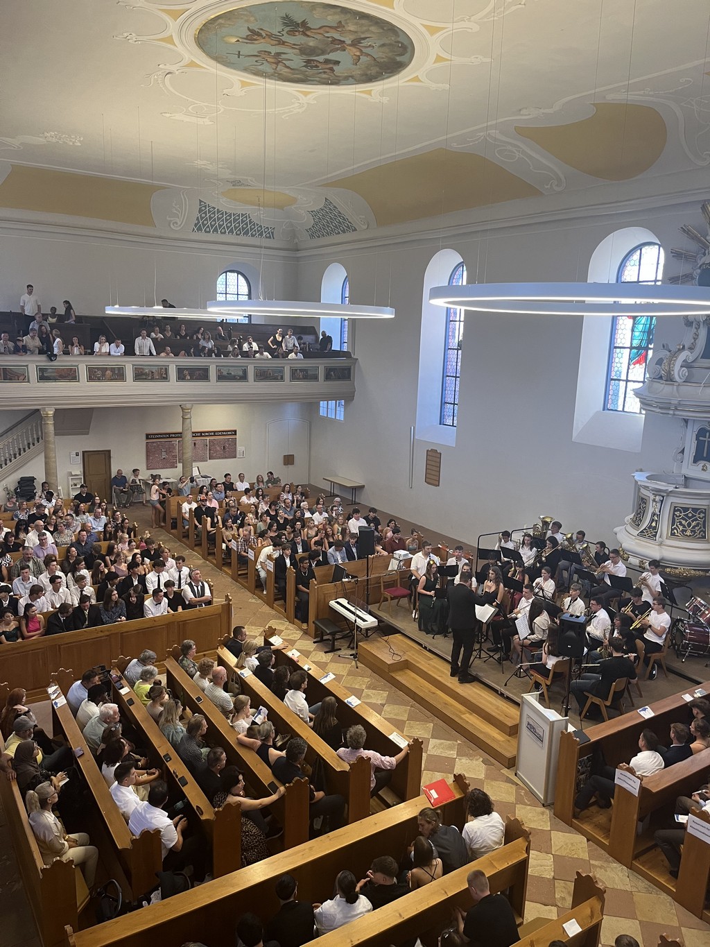 Am 27. Juni fand die feierliche Zeugnisübergabe der Mittlere-Reife- und Berufsreife-Zeugnisse der PGRS+ statt. Imposant war der flotte „Einmarsch“ aller vier Mittlere-Reife-Klassen und der beiden Berufsreifeklassen zur Marschmusik der Windband. Die evangelische Kirche in Edenkoben bot sich dafür an, da sie gleich drei Eingänge hat.