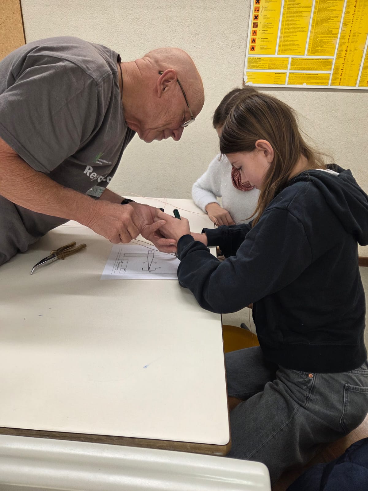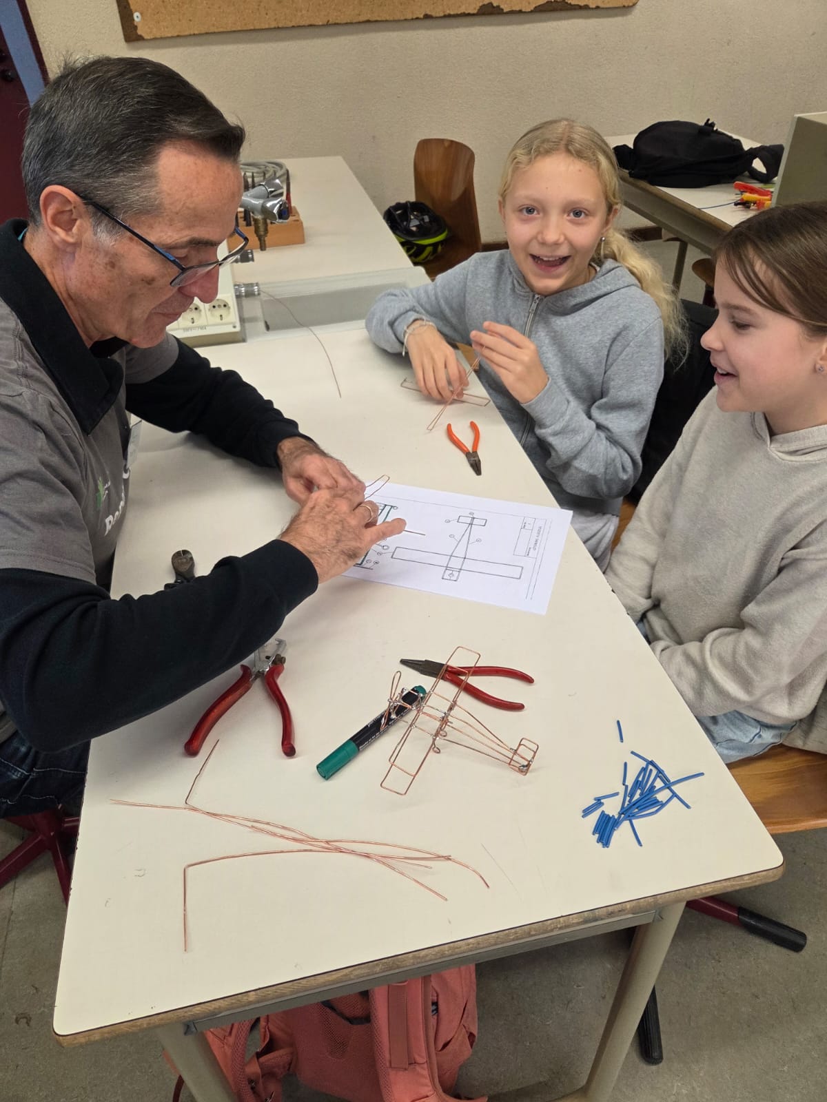 Mit Hilfestellungen der geübten Handwerker bogen und löteten unsere Schülerinnen und Schüler kleine Flugzeuge – so entstanden dabei individuelle Weihnachtsgeschenke, die allen Beteiligten große Freude bereiteten.